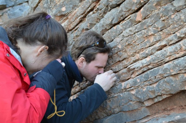 In the weeks leading up to the trip, the students read scientific papers detailing the discoveries made in this region and took turns presenting the material in class. They covered Italy’s tectonics and the evidence for several mass extinctions recorded in the Apennines’ exposed marine sediments of the Apennines—the K/T extinctions 66 million years ago; the Paleocene-Eocene Thermal Maximum, about 55 million years ago, when a rapid warming of the planet killed off many species, leading to the rise of some modern mammals; and the Eocene-Oligocene extinctions, about 34 million years ago, marked by a rapid cooling and the emergence of ice on Antarctica.